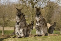 Mit Sicherheit gibt es jedenfalls Babys bei den Kängurus (Bild), immer häufiger strecken die neugierigen Jungen nun schon ihre Köpfe aus den Beuteln der Mütter um sich auch ihre Portion Sonnenschein zu holen. Auch bei den Kronenkranichen (Bild) kann schon ein Jungtier beobachtet werden. Obwohl schon fast so groß wie seine Eltern, wird es noch einige Monate dauern bis sich auch bei ihm die auffällige strohfarbene Federkrone und die schöne bunte Färbung entwickelt, aber auch so ist das stolz durch die Anlage schreitende Jungtier dieser gefährdeten Vogelart schon ein wahrer Hingucker.