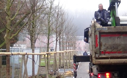 Nach der großflächigen Bodenentsiegelung des Messegeländes Ost entsteht gerade die deutliche Volksgarten-Erweiterung, die bis zum Sommer fertiggestellt sein wird. 2027 findet dann hier die Landesgartenschau unter dem Titel „Stadt der Gärten“ statt. Bild: Die Baumallee von der Stadthalle Richtung Traun ist bereits gepflanzt.